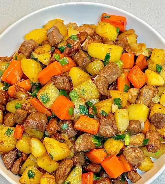 图片来源于网络 侵删土豆和胡萝卜炖得软烂,猪肉鲜香不柴,三者搭配不仅口感温润,还能补充日常所需能量,消化起来毫无负担,全家都爱吃。