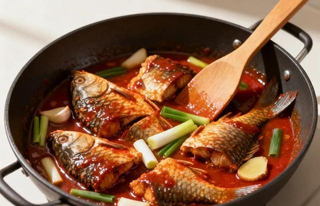 很多人觉得炖鱼复杂,其实关键就在“用酱”上。放弃单纯依赖葱姜蒜,去腥的旧思路,多加一勺黄豆酱,既能去腥又能增香,还能让鱼肉更入味。
