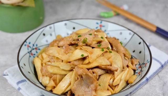 淋少许水增加湿度,待茭白片变软,肉片回锅,混合均匀出锅