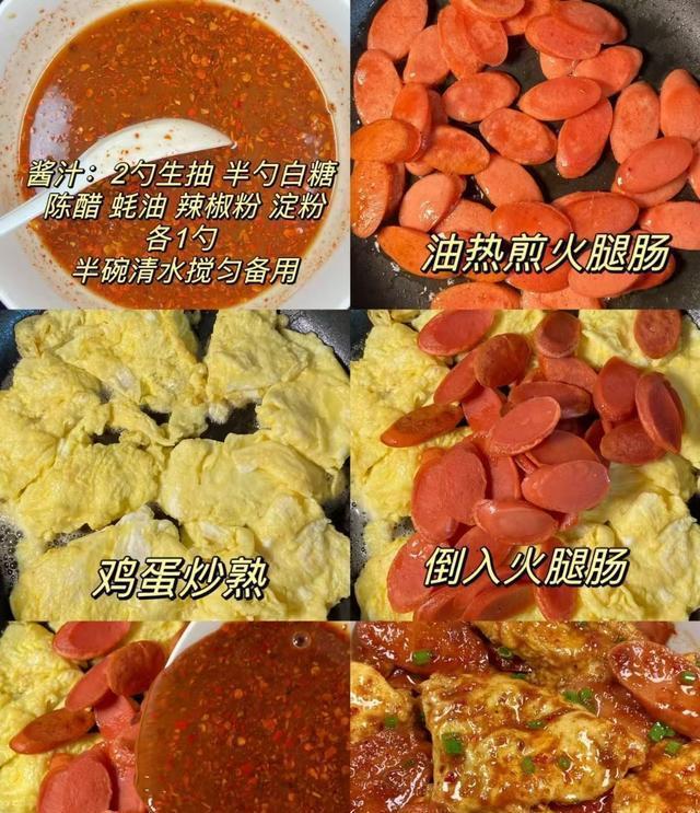 图片来源于网络 侵删第一次做这个火腿肠炒鸡蛋真的惊艳到我了!巨好吃,巨香!鸡蛋嫩滑,火腿肠表皮焦脆,酱汁浓郁,拌上三碗米饭都不够吃!