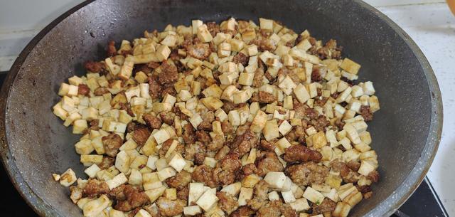 图片来源于网络 侵删第二步:锅里烧油,油热后先把猪肉末一块下锅进行煸炒,炒至变色后加入姜末、生抽、老抽和蚝油炒匀炒上色。再将豆腐干也下锅,加入食盐、十三香等调味,少加一点清水翻炒均匀。