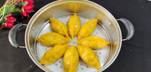 ——青蒜豆干馅南瓜水晶蒸饺——