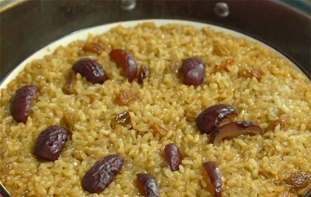 图片来源于网络 侵删5.切好的枣片铺在底部,再撒上一层葡萄干,均匀的铺上一层糯米,上面撒上红糖,用勺子压紧实一点,继续再重复上面的步骤,按照刚才的顺序一层一层的铺好,最后一定要压紧实一点,加入刚好没过食材的清水,冷水上锅,水开后大火蒸40分钟,时间到了关火以后焖五分钟。