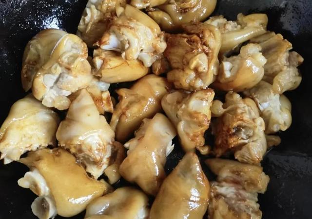 图片来源于网络 侵删3.加入生抽和老抽,翻炒均匀,使猪脚上色。加入足够的清水,水量要没过猪脚。加入八角、香叶、食盐,干辣椒和花椒。大火烧开后,转小火慢炖1-1.5小时,期间注意观察水量,避免烧干。