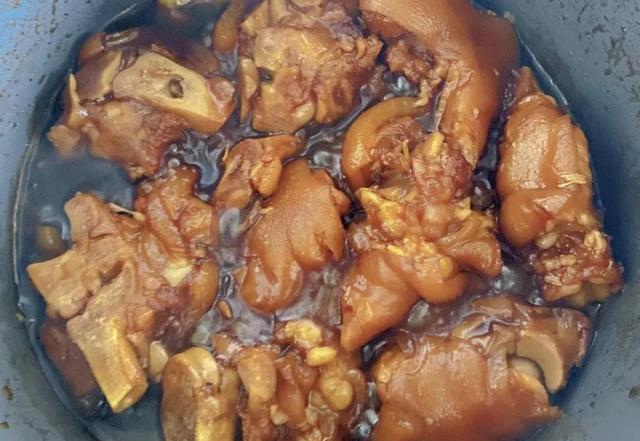 炖至猪脚软烂,汤汁浓稠时,继续炖煮5-10分钟,使猪脚充分吸收汤汁的味道。