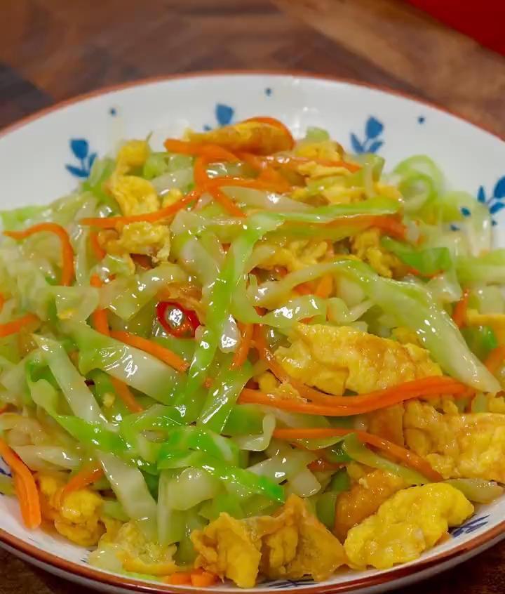 图片来源于网络 侵删准备食材:包菜、胡萝卜、鸡蛋