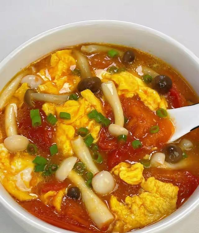 四、番茄鸡蛋菌菇汤:酸甜开胃,补营养促代谢