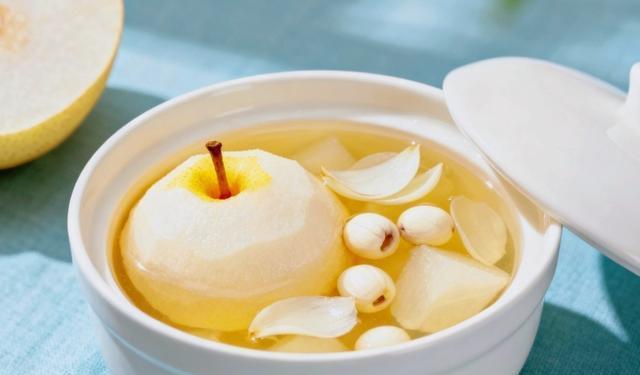 - 做法:雪梨去皮去核,切成小块;干百合、干莲子用温水浸泡10分钟,洗净;将雪梨、百合、莲子放入炖盅中,加入清水和冰糖,盖上盖子;蒸锅水烧开后,将炖盅放入蒸锅中,蒸25分钟即可。