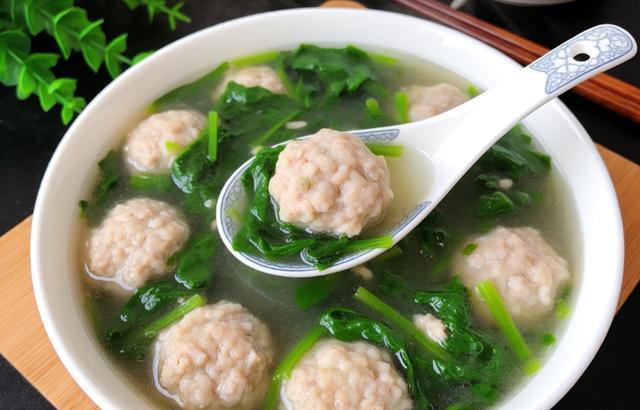 主要食材:猪肉丸子、绿苋菜、胡椒粉、盐、猪油、姜片、清水