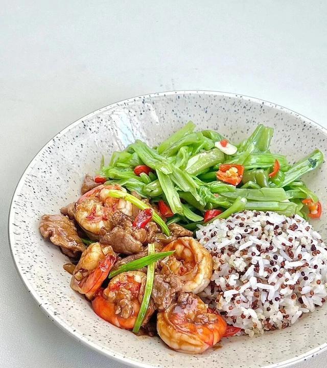 热锅冷油,先放牛肉快速滑炒至变色就盛出,再用底油爆香蒜末和姜片,倒入虾仁炒到变红卷曲,最后倒回牛肉,加一勺蚝油和少许盐调味,翻炒10秒就能出锅,鲜香味直窜鼻腔