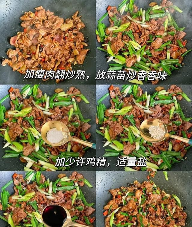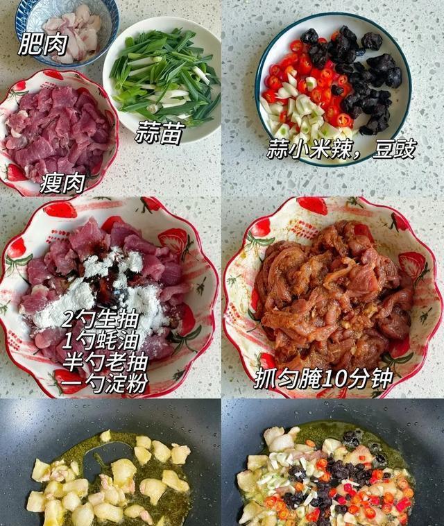图片来源于网络 侵删做法:瘦肉加两勺生抽,一勺蚝油,半勺老抽,一勺淀粉抓匀腌制10分钟,少油放肥肉炒出油脂,放蒜小米辣,豆豉炒香。