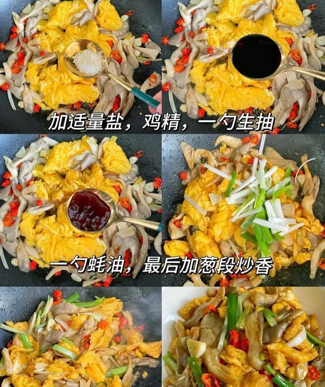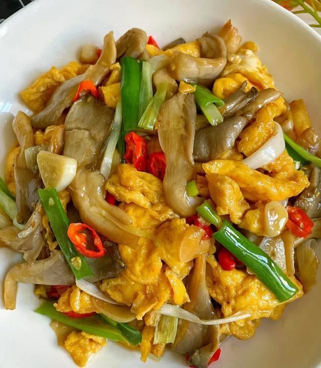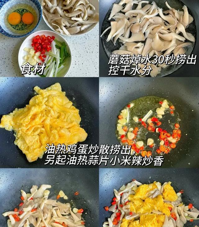 图片来源于网络 侵删做法:平菇焯水30秒捞出控干水分,油热鸡蛋炒散捞出,爆香蒜片小米辣,放蘑菇翻炒,加鸡蛋~