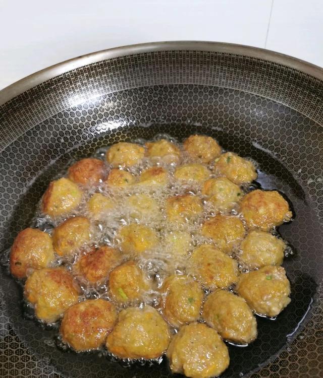 图片来源于网络 侵删6、耐心一点,将全部的丸子做好之后放入油锅中,小火慢慢炸制,一点要注意小火,火大了就很容易炸糊了。