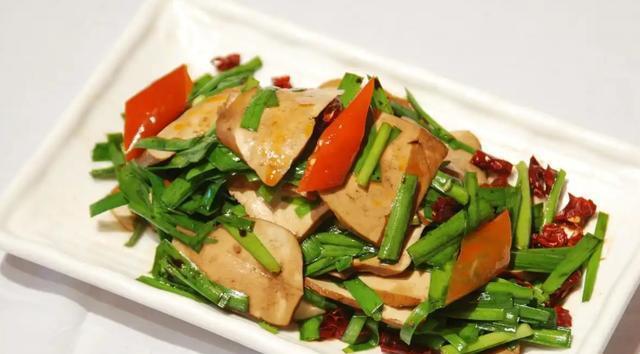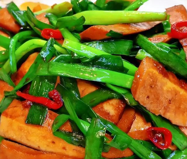 6. 加入韭菜:当豆腐炒至微黄色时,加入切好的韭菜段,快速翻炒均匀。韭菜炒的时间不宜过长,以保持其鲜绿和脆嫩的口感。