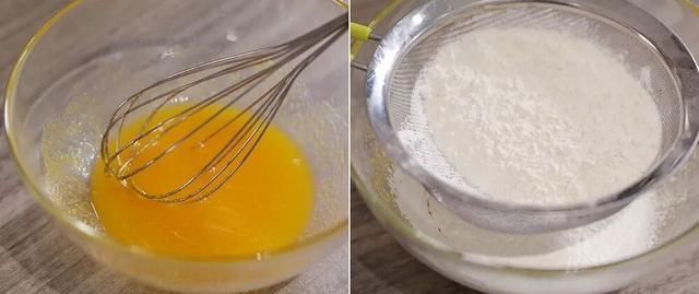 图片来源于网络 侵删首先在一个大碗里将蛋黄、细砂糖、花生油、盐混合,用手动打蛋器搅打均匀,成为液体混合物。