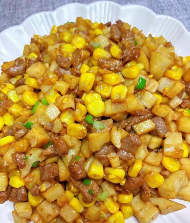 三、肉沫藕丁玉米(口感丰富,营养均衡)