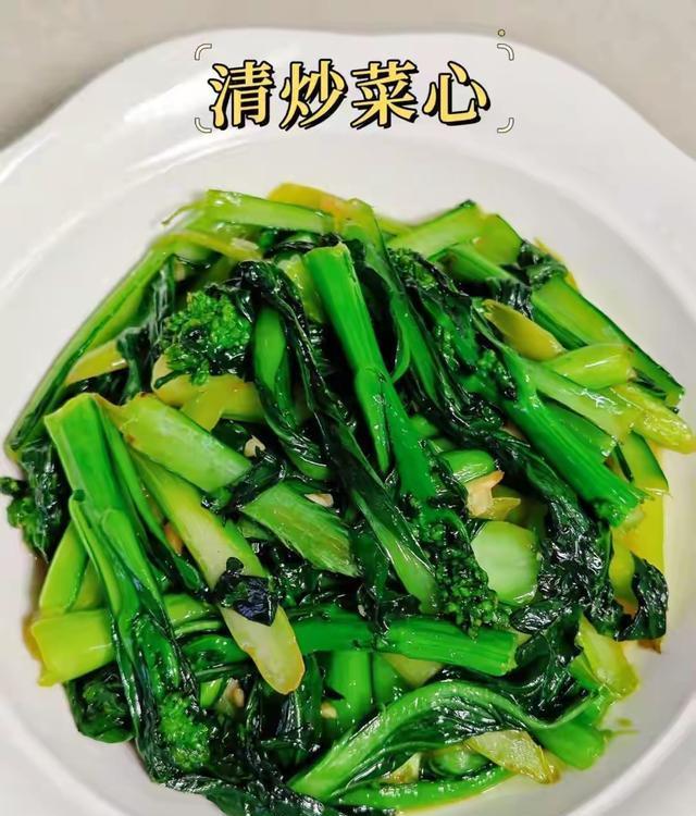 油菜心富含维生素和膳食纤维,做法简单清爽,能帮身体补充必要营养,还能解腻开胃。