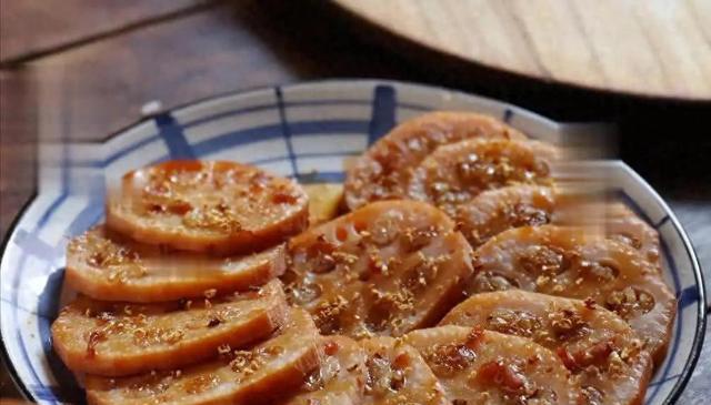 图片来源于网络 侵删5、汤锅倒入大量的水放入莲藕,然后再加入红糖粉及干桂花。形成一个“内外夹击”的状态,这样保证煮好的成品味道足够浓郁。大火煮开之后转小火,慢慢煨煮至差不多要收汁的时候加入蜂蜜。然后注意收汁的状态,粘稠一些即可关火捞出切片食用。