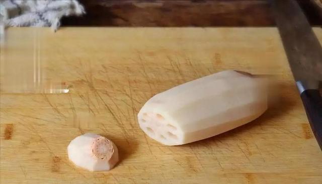 根据所需把莲藕刮皮清洗干净尤其是表面的淀粉质,不然后续制作慢了容易氧化泛红。接着在藕的一边斜切一下并清洗藕孔,避免里面有淤泥或杂质。如果担心不干净,那就用筷子戳洗后备用。
