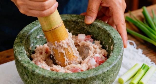 - 鱼泥剁至“能粘在刀背上不掉落”的状态即可,不要剁得太稀,否则影响成型。
