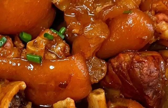 图片来源于网络 侵删准备食材:猪蹄,姜片,蒜片,葱花,冰糖。