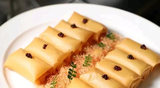 山药的甜蜜与鱼子酱的奢华相遇,会碰撞出怎样的火花?这道鱼子酱脆皮山药给出了答案。山药泥与蔓越莓果干、炼乳等调料混合,挤入春卷皮中炸至金黄酥脆。最后撒上鱼子酱,每一口都是甜蜜与奢华的完美融合。