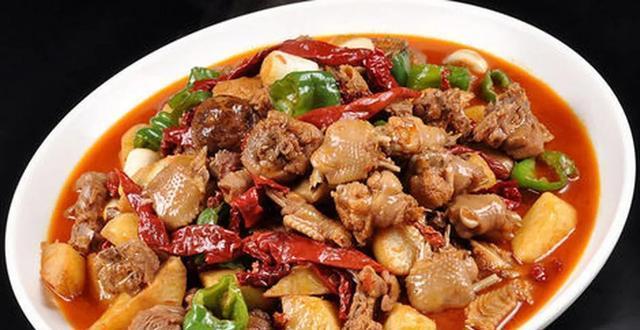 3. 炒制:锅中倒入适量油,加入干辣椒和花椒,爆出香味后加入姜片和蒜片翻炒,倒入腌制好的鸡块,大火翻炒至表面微微焦黄,加入生抽、老抽和适量水,焖煮40分钟,加入土豆,继续焖煮20分钟。