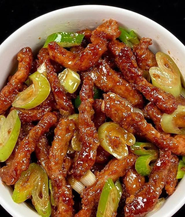 4、最后大火翻炒收汁,再撒入一把葱花点缀提鲜,即可出锅开吃。
