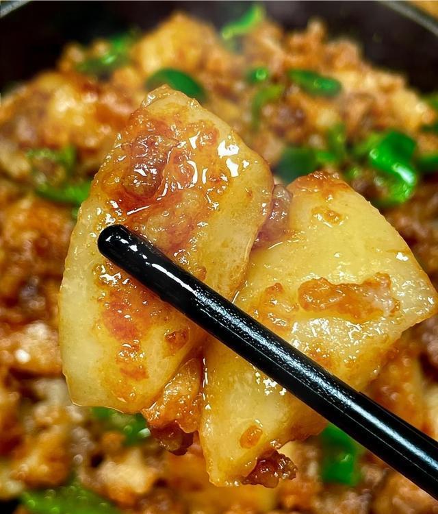 一、青椒肉沫土豆:软糯下饭,补钾护肌