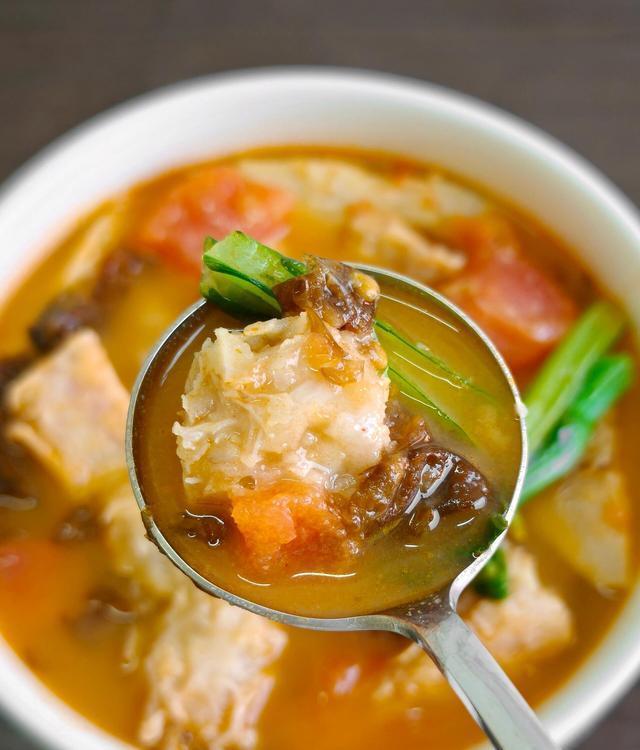 芋头每100g含钾约378mg,钾含量丰富,且富含黏液蛋白,能保护肠胃黏膜,减轻肝脏代谢压力;番茄中的番茄红素是天然抗氧化剂,辅助保护肝细胞,紫菜富含碘和膳食纤维,搭配后汤品清甜顺滑,补钾的同时易消化,适合中老年日常调理饮食。