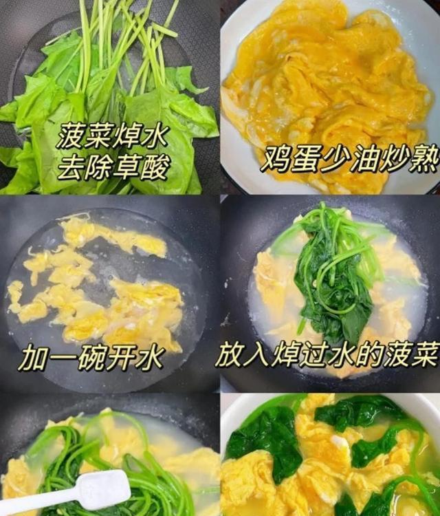 图片来源于网络 侵删1. 菠菜洗净,放入沸水中焯水30秒(去除草酸),捞出过凉水,切段;鸡蛋打散备用。