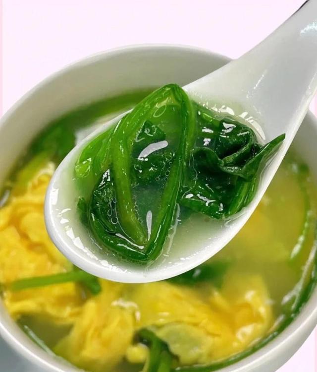 菠菜每100g含钾约558mg,是名副其实的高钾蔬菜,钾元素能促进身体新陈代谢,帮助排出多余废物,减轻肝脏负担;鸡蛋提供优质蛋白,搭配后汤品清爽不油腻,营养易吸收,既能补钾,又能补充日常所需营养,中老年隔天喝一次,腿脚更有劲。
