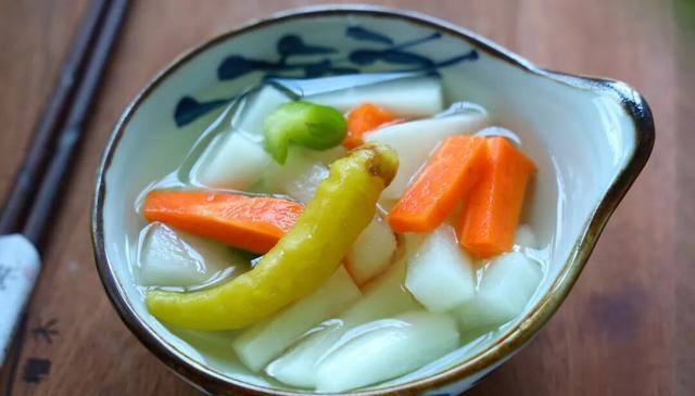 图片来源于网络 侵删【制作配料】白萝卜3根 胡萝卜1个 青椒3个 泡椒水1碗 白醋1碗 白糖50-80克 盐适量