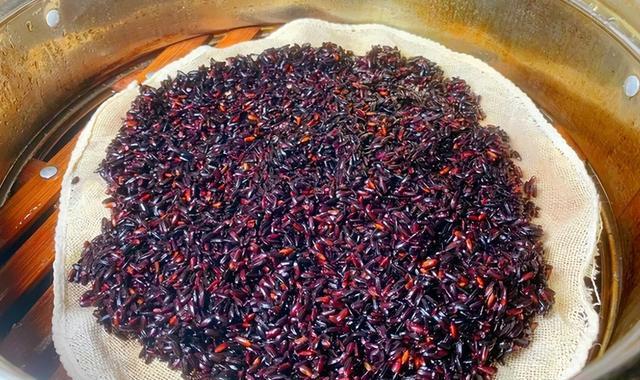 图片来源于网络 侵删2、蒸黑米:把泡好的黑米沥干水分,铺在蒸布上,用筷子扎几个小孔,这样容易蒸透。大火蒸约40分钟,蒸到黑米熟透即可。如何判断是否熟透?尝一尝,熟了的黑米软糯有嚼劲,没有生硬感。