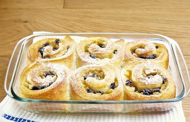 内馅再加入葡萄干及奶油,会让口感更丰富。
