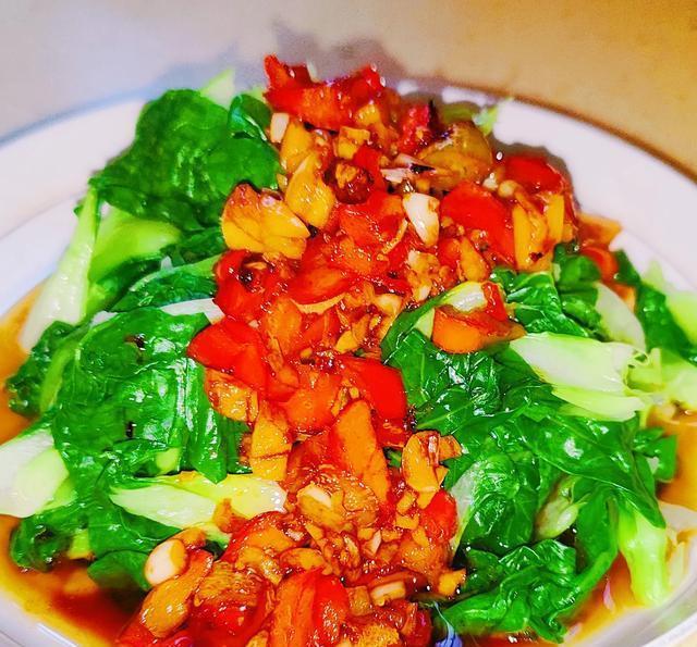 1.准备小白菜清洗干净,沥干水分放入碗中,加入适量盐,腌制半个小时;准备蒜剁成末;准备红辣椒也剁成沫。