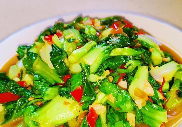 3.加入干辣椒和蒜片爆香。加入沥干水分的白菜炝炒。将白菜稍微炒软,加入盐,加入鸡精,快速翻拌均匀出锅。一道好吃的炝炒白菜就做好了!这里要注意白菜加入一定要持续保持大火,大火能析出白菜多余的水分,使蔬菜吃起来更加脆爽。
