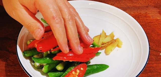 图片来源于网络 侵删5. 再准备两个红辣椒,斜刀也切成薄片,加入红辣椒主要是用来配色,切好以后放入盘中。