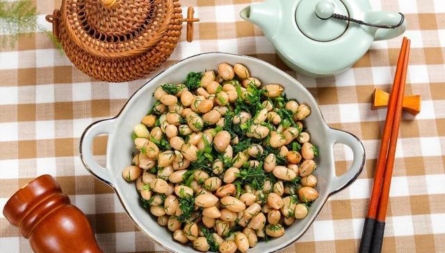 7. 拌匀所有材料:将切好的茴香段加入到大碗中,倒入事先调好的酱汁。然后加入炒香的大蒜和辣椒,最后放入炒好的花生仁,搅拌均匀,使所有食材充分入味。