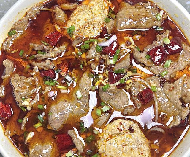 食材:牛肉、豆花、豆芽、金针菇、葱、蒜、干辣椒、火锅底料、豆瓣酱、盐、生抽、淀粉、食用油