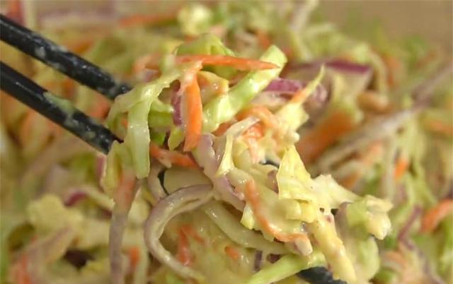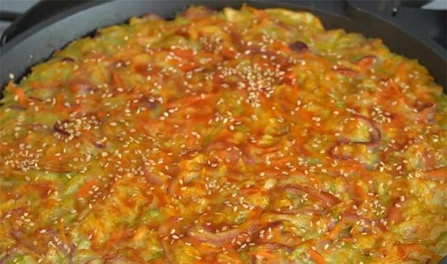 包菜、胡萝卜、洋葱、胡椒粉、盐、普通面粉、清水、食用油、番茄酱、芝麻