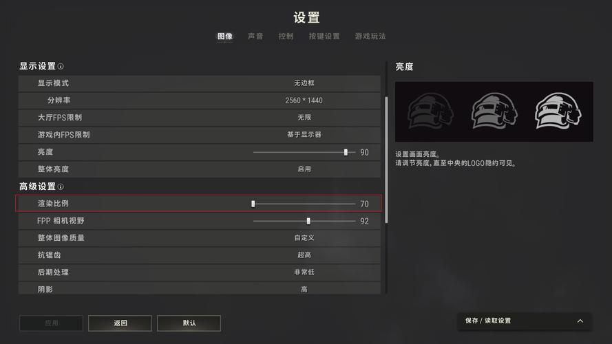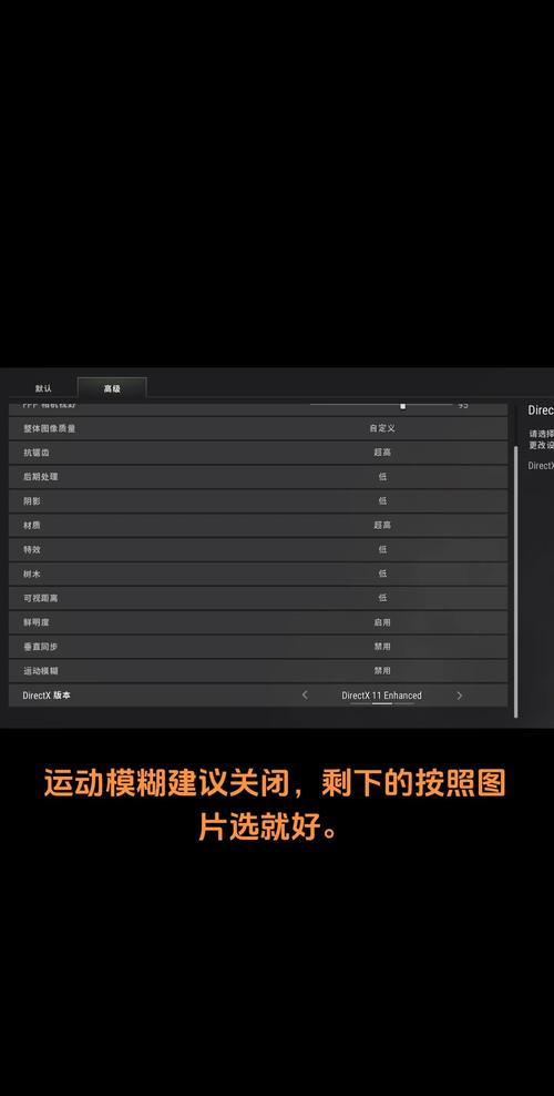 其他内存容量的启动参数,请参照上述提供的示例进行调整。绝地求生画面设置建议:后期处理:建议开高,以避免画面模糊。抗锯齿:调高以减少远处的闪烁现象,同时基本不影响帧数。其他设置:建议调至最低,以提高游戏性能。屏幕比例(渲染度):调成120可以使画面更清晰。