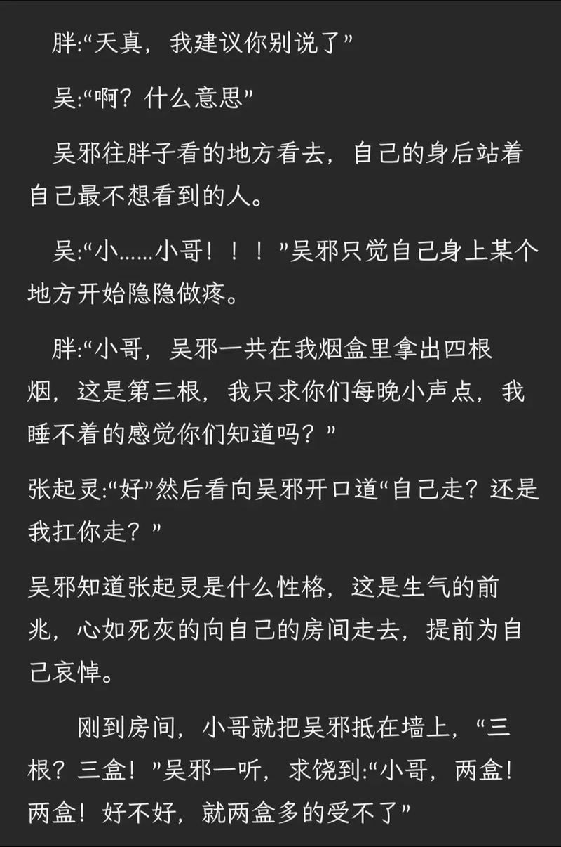 6、长篇原著。从吴邪几次穿越,描绘了小哥从小到大的历程。文笔细腻,性格把握很到位。2《浮生散记》完结 极好的文章,只要你不怕虐。2《人参娃娃》完结 灰常萌的文,治愈之选,古风架空。2《雪岭终途》完结 很现实的一篇文,结局美好,瓶邪黑花。