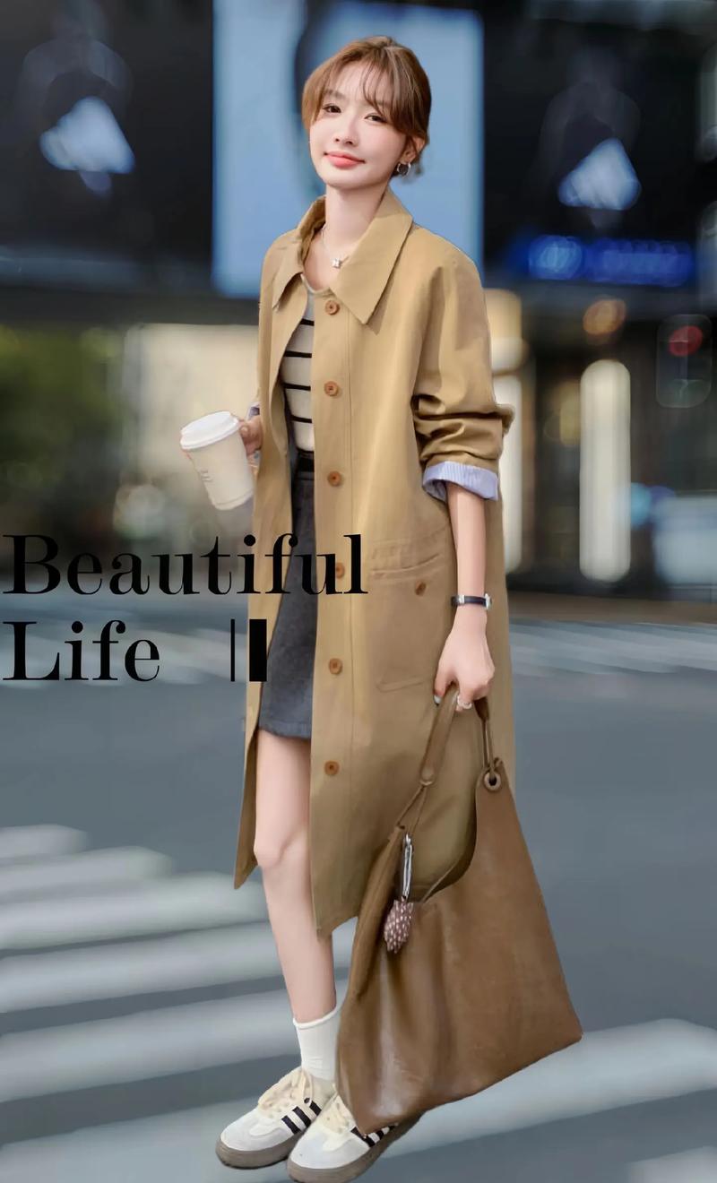 6、如果想要展现出温暖舒适的风格,可以选择米白色、浅灰色或浅驼色的围巾。这些颜色与卡其色大衣搭配,不仅能够凸显卡其色的大气,还能让整体造型更加柔和。如果你想要打造更为时尚、个性的风格,可以考虑选择深蓝色、墨绿色或黑色的围巾。