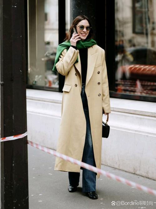 5、卡其色大衣搭配同色系围巾、红色围巾或黑色围巾,都能展现出不同的风格与魅力。 同色系围巾搭配:选择与卡其色相近的围巾,可以营造出整体的协调感。这种搭配在时尚界经久不衰,深受欢迎。 红色围巾搭配:一抹鲜艳的红色围巾能够为卡其色大衣增添一抹亮色,成为整体造型的点睛之笔,吸引众人目光。
