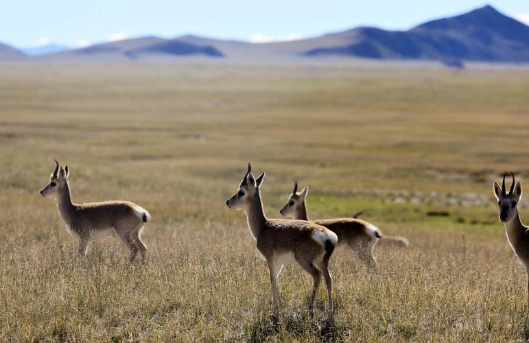 3、动物: 牦牛:是青藏高原特有的哺乳动物,能够在高寒缺氧的环境中生存,是当地居民重要的交通工具和生活资源。 藏羚羊:是青藏高原特有的珍稀动物,以其独特的迁徙行为和珍贵的羊绒而闻名,是国家一级保护动物。
