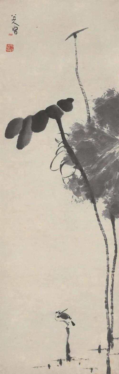 八大山人为清初“四大画僧”(朱耷、石涛、石()、渐江)之一, 以大笔水黑写意画著称,尤以花鸟画见长。他的绘画能取法自然, 又独创新意;师法古人,又不泥于古法;笔墨简练,以少胜多。 他怀着国破家亡的痛苦心情,借花鸟、木竹、 山水来抒发对满洲贵族统治者的不满和愤慨, 表现他那倔强傲岸的性格。