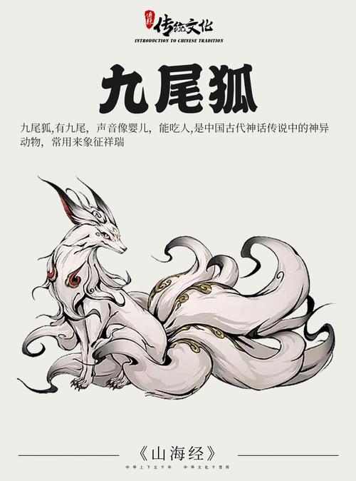 然而,九尾狐的形象并非一成不变。最晚在北宋初期,九尾狐已被妖化,成为了一种凶恶的存在。这与早期九尾狐吃人的凶恶形象相呼应,但妖化后的九尾狐更加恐怖和邪恶。文化影响 中国:九尾狐在中国古代文化中占据了重要地位,不仅出现在《山海经》等神话传说中,还广泛流传于民间故事、文学作品和艺术创作中。