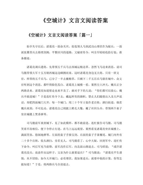 2、《空城计》选自《三国演义》,作者是罗贯中,是以三国时魏、蜀、吴三个封建统治集团相互间的斗争为题材的长篇历史小说。接下来我为你带来《空城计》课文原文,希望对你有帮助。 话说三国时魏国的名将司马懿占领了街亭以后,亲自带领十五万大军向西城这个地方来了。