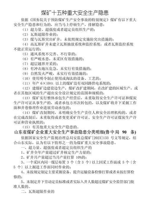 安全生产隐患主要包括以下几类:危及安全生产的危险、有害因素和重大险情 这类隐患通常指的是生产过程中存在的可能直接导致事故发生的危险因素,如设备故障、操作失误、化学物质泄漏等,以及那些虽然暂时未导致事故,但存在重大潜在风险的险情。